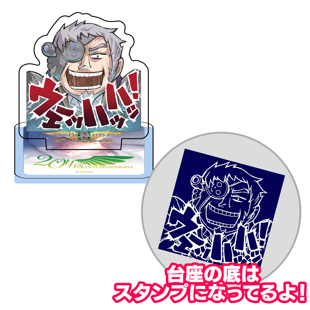 Amazon「ケイブオンラインショップ」にて、『エスプガルーダII』キャラクターのアクリルガーランドチャーム(3個セット)2種と、『エスプガルーダII』20周年記念ロゴがデザインされたアクスタンプ(アクリルスタンドスタンプ)が販売中です。