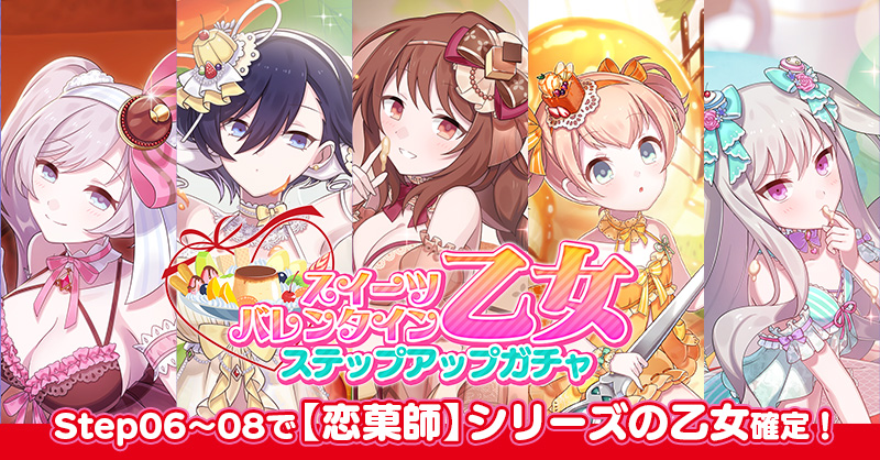 バレンタインイベントの開催にあわせ「スイーツバレンタイン乙女ステップアップガチャ」の販売を開始いたしました。