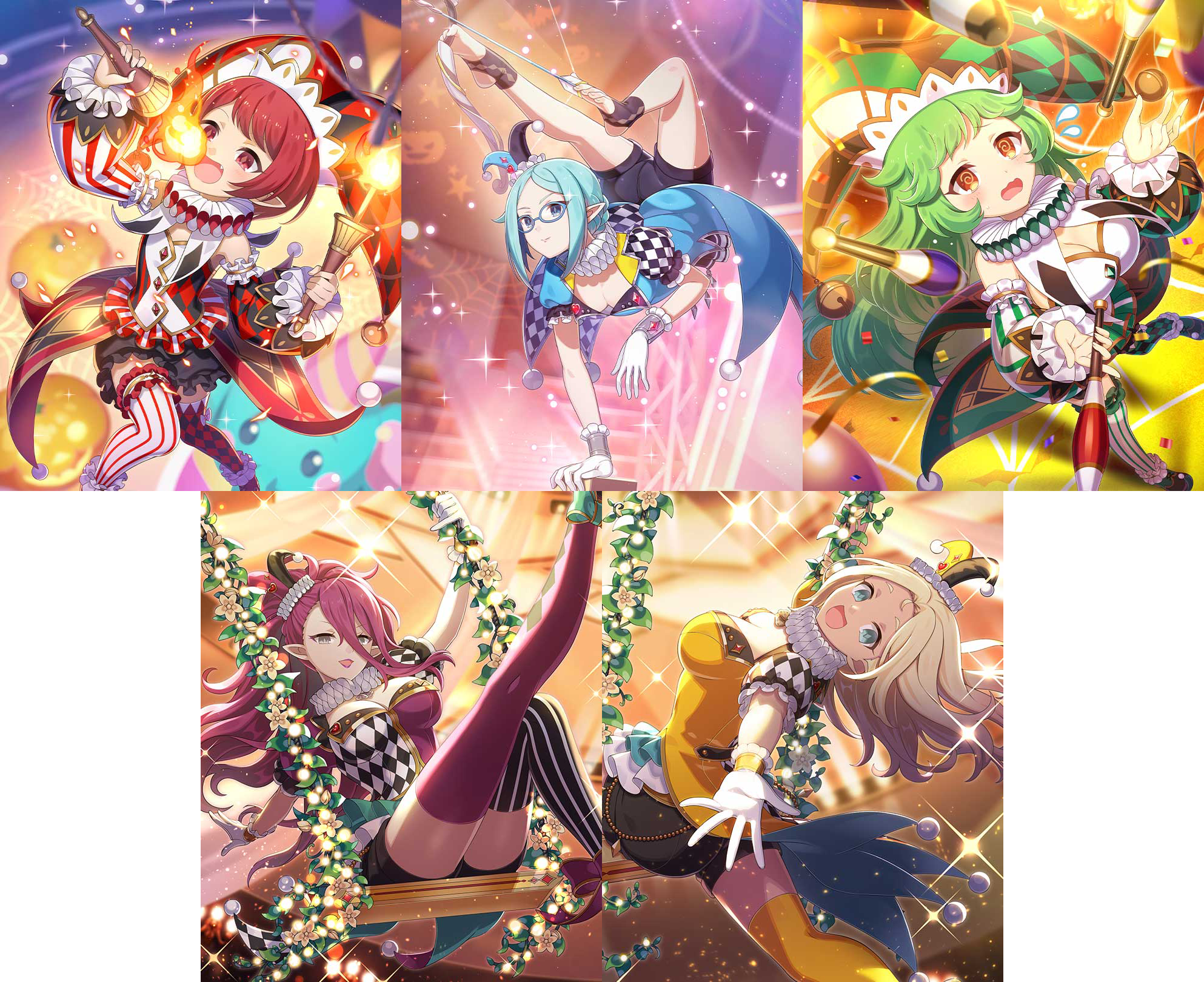 サーカス衣装の5悪魔が描かれた、【芸師】シリーズの使い魔がそれぞれ登場するガチャを販売中です。